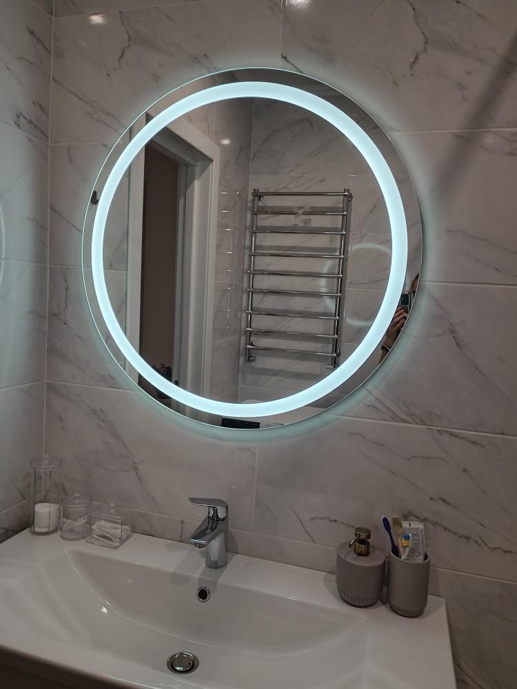 Елегантне кругле дзеркало з LED-підсвіткою, яке рівномірно підсвічує обличчя та створює комфорт під час використання.